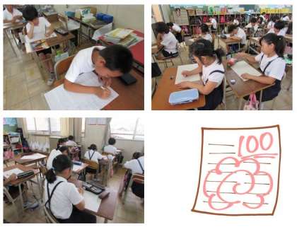 5月31日(水) 4年生の漢字テストです。しっかり予習をしてきているようです。