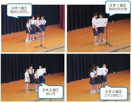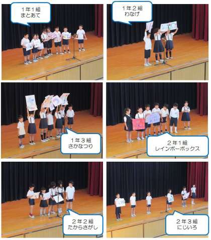 本日の集会は、6月10日(土)に行う「千本子どもまつり」のお店PR第2弾でした。1年生、2年生、3年生の各クラスが、それぞれのお店のPRをしました。