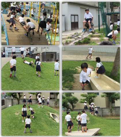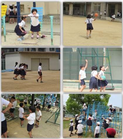 お昼休みになりました。子どもたちが元気に運動場で遊んでいます。