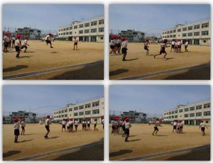 1組は、体育館でドッジボールをしました(画像1・2段目)。