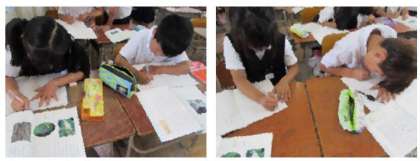 3年生の国語の学習です。段落ごとに読み取ったことをもとにして、考えたことや感想を書いて発表しました。