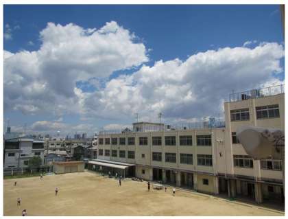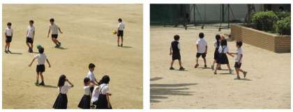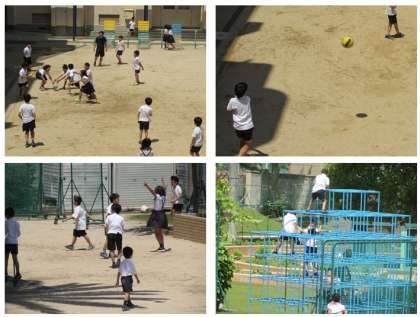 昨夜来の雨で、朝、運動場には水たまりができていました。けれども時間がたつにつれて気温はぐんぐん上がり、青空が広がりました。2時間目が終わるころには運動場も使えるようになっていました。