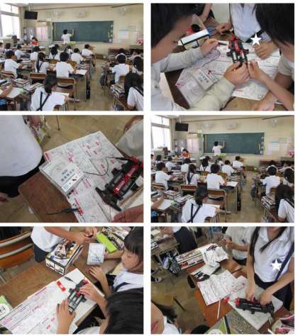 続いて、モーターカーを組み立てました。スイッチをONにすると、車が走り出し、歓声が沸きました。