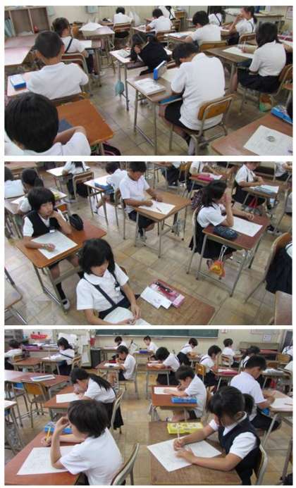 3年生が算数のテストに取り組んでいます。今日のテストは『わり算』です。
