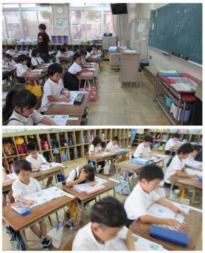 1年生の国語の学習です。画像は、ひらがな『ふ』を学習している場面です。