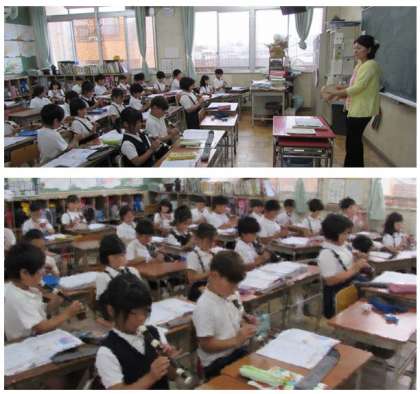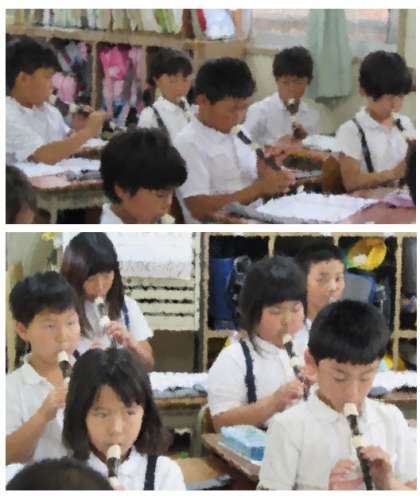 3年生の音楽の学習です。リコーダーを吹いています。だんだんきれいな音が出せるようになってきました。