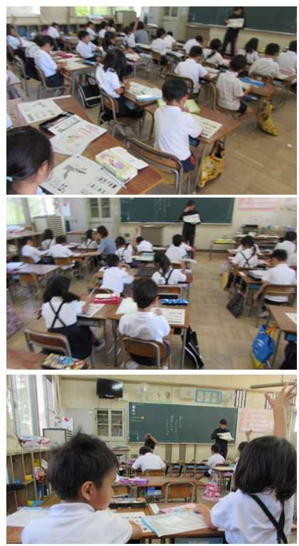 6月9日(金) 1年生の算数の学習です。初めに、宿題プリント(なんばんめ)の答え合わせをしています。