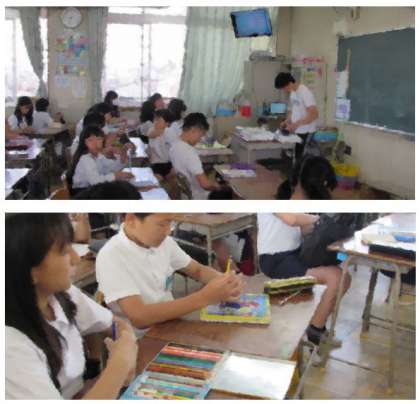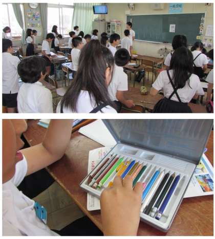 Englih Timeの6年生の様子です。1組では、色鉛筆を使って「What color do you like?(あなたは何色が好きですか)」という言い方の練習をしました。