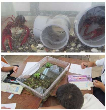 2年生の生活科の学習です。今日は2組がザリガニの観察をしました。ザリガニに触ることはできたでしょうか。