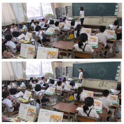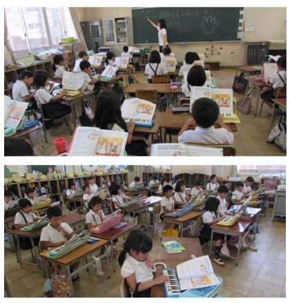 2年生の音楽の学習です。鍵盤ハーモニカで「かっこう」の演奏に取り組んでいます。使う指を確かめながら、演奏しました。