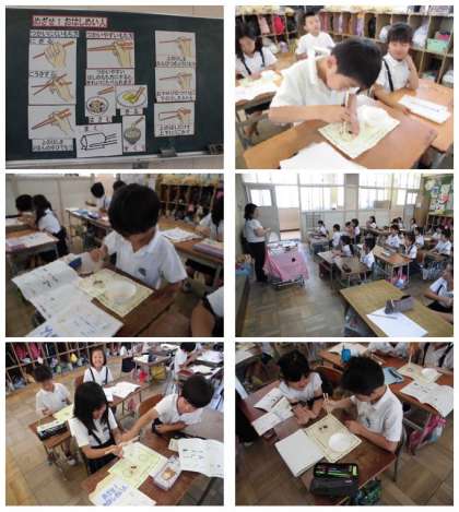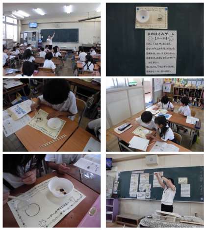 本日、北津守小学校の栄養職員の方にお越しいただき、2年生の食育を行いました。2年生の食育は、正しい箸の使い方についてです。子どもたちは箸を使って豆を移し替える作業をしながら、正しい箸の持ち方について学びました。ご家庭でも、ぜひお声掛けをお願いします。