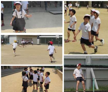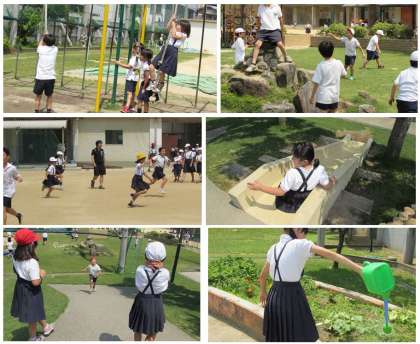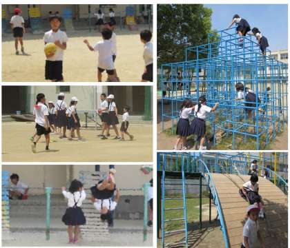 休み時間になりました。子どもたちが運動場で元気に遊んでいます。