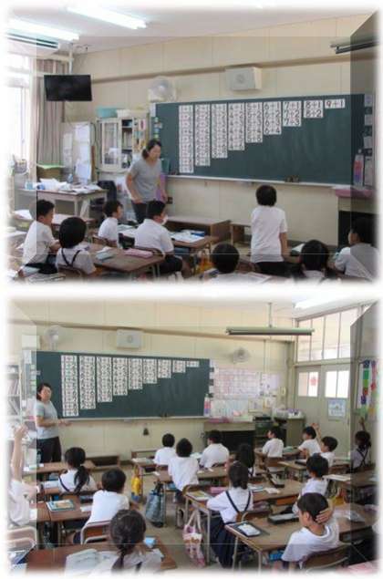 1年生の算数の学習です。答えが10までのたし算を学習しました。その中から、答えが10になるたし算を見つけています。