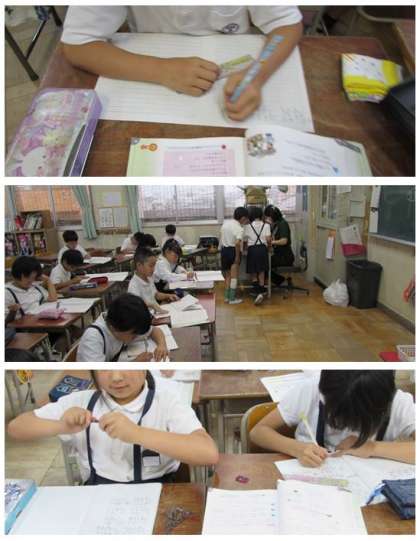 3年生の算数の学習です。3けた、4けたの数のたし算、ひき算の計算練習に取り組んでいます。