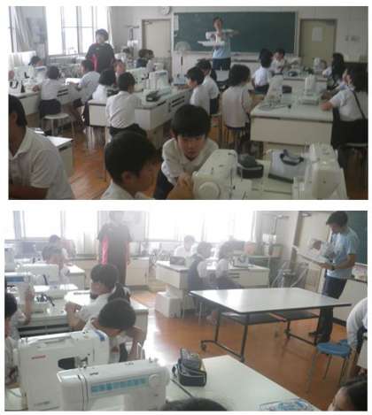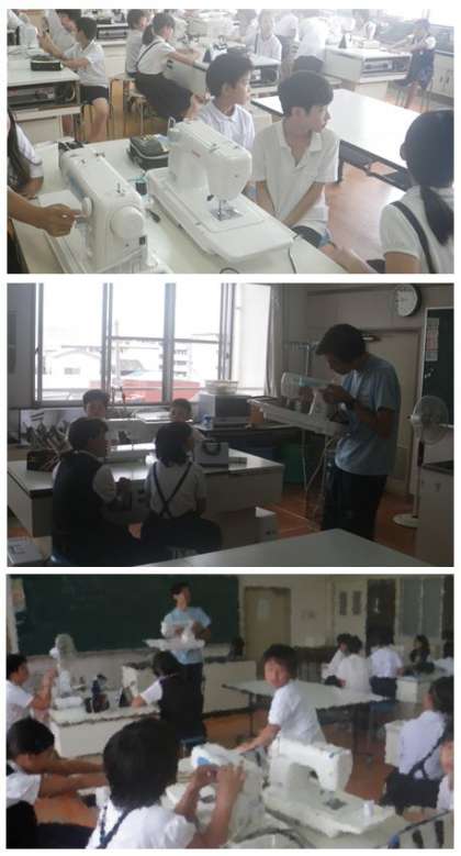 5年生の家庭科の学習です。今日は家庭科室に行き、ミシンの使い方を学習しました。そして、実際に布を置き、ミシンで縫ってみました。