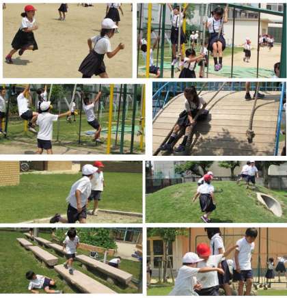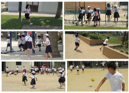 休み時間になりました。子どもたちが運動場で元気に遊んでいます。