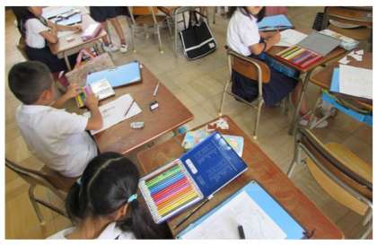 いくつかの鉢でアサガオの花が咲いた、ということで、子どもたちは皆、アサガオの観察をしました。まだまだ咲いている花は少ないのですが、多くの鉢でつぼみを確認することができました。