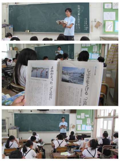 5年生の国語『新聞記事を読み比べよう』の学習です。教科書70〜71ページの2つの新聞記事を読み比べ、共通点や相違点をとらえてノートに整理していきました。
