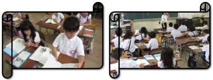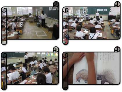 1年生の国語の学習です。ヤマアラシ、アルマジロ、スカンクのそれぞれの動物の身の守り方を読み取っていきました。