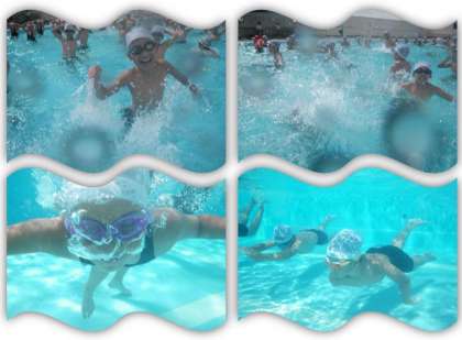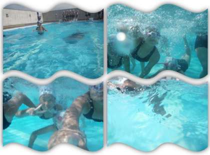 5年生の水泳学習です。今日は深く潜って進む練習を行いました。