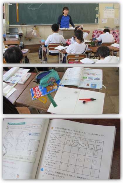 4年生の算数の学習です。対角線の意味を知り、いろいろな四角形の対角線の特徴をまとめました。