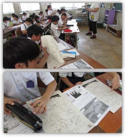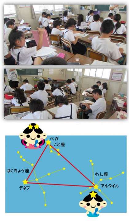 4年生の理科の学習です。今日は夏の夜空に見える星、特に代表的な「夏の大三角」について、学習しました。