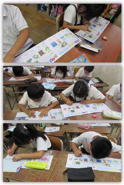 3年生の国語の学習です。ローマ字の学習で、今日は「ma・mi・mu・me・mo」を学習しました。