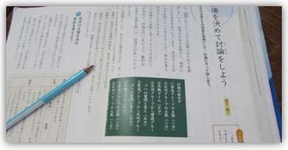 5年生の国語の学習です。自分たちの身近な出来事から論題を選んで自分の立場を決め、説得力のある理由を考えて意見文を書きました。