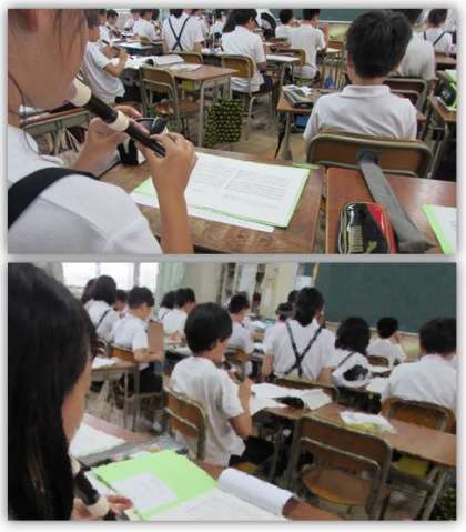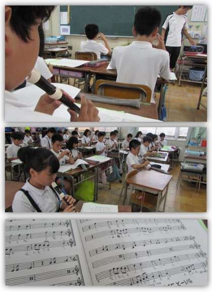 6年生の音楽の学習です。リコーダーで「ラバースコンチェルト」の二重奏に挑んでいます。