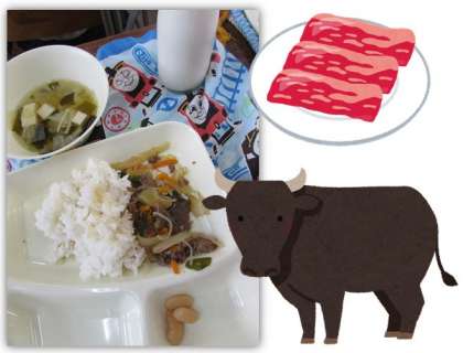 牛肉は、血や肉をつくるもとになるたんぱく質がたくさん含まれています。また、貧血を防ぐ鉄や、子どもの成長に必要な亜鉛もたくさん含まれています。