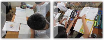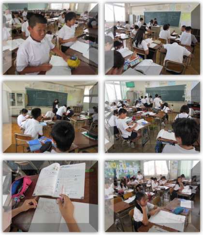 6年生の算数の学習です。分数のかけ算・わり算のまとめの学習に取り組んでいます。