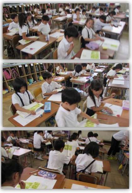 2年生の国語の学習です。担任の先生の話を聞き、教科書P70・71の絵の中から当てはまる犬を探しました。そして、聞くだけではわかりにくいので、メモを取る必要性に気づきました。