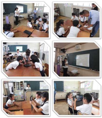 千本小学校には、40台のタブレット端末があります。子どもたちが、タブレット端末を様々な学習の場面で活用できるよう、本日はICT支援員の方にお越しいただき、2・3・4年生のクラスで授業の支援をしていただきました。