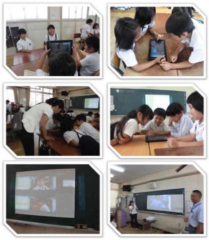 画像は、2年生の様子です。カメラ機能を使って写したものが、プロジェクターから投影されています。この機能を使い、学習の発表の場面にも使えそうです。