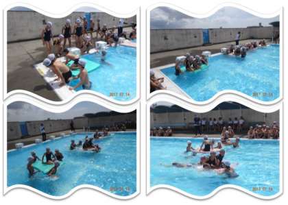 初めに、浮き島レースを行いました。浮き島の上に友達を乗せて、ゴールまで押していきます。