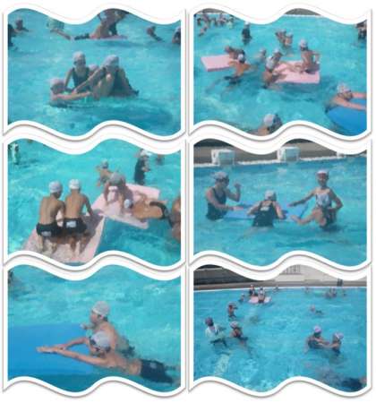 5・6年生のプール開放の様子です。クロールの練習の後、『洗濯機』をしたり、浮島を使って遊んだりしました。