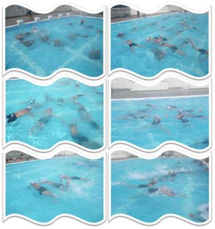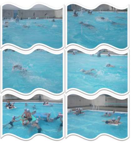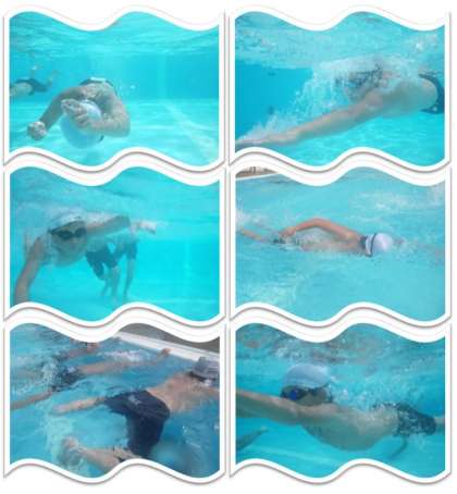 プール開放4日目です。5・6年生は、平泳ぎの練習を行っています。プールの壁を持ち、足の使い方を練習しました。