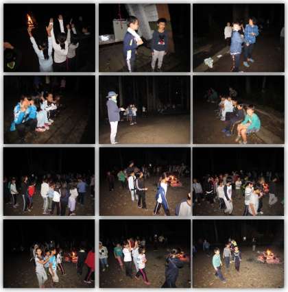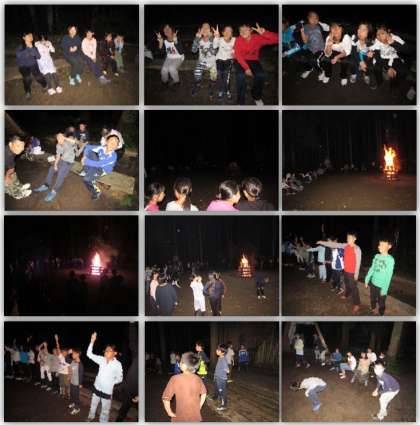 キャンプファイヤーです。レクリエーション係が中心になって、いろいろなゲームで楽しみました。