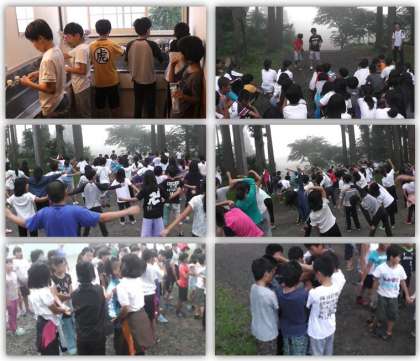 2日目の始まりです。まだまだ眠い目を、ラジオ体操やゲームで覚まさせます。