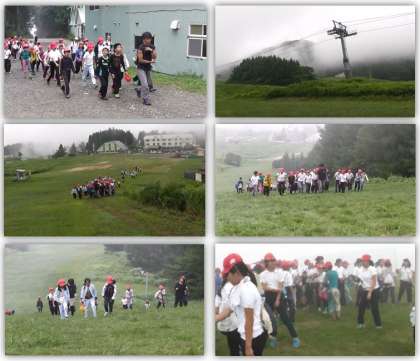 雲に隠れている山頂を目指して、登っていきました。無事山頂にたどり着いて、ほっとしました。