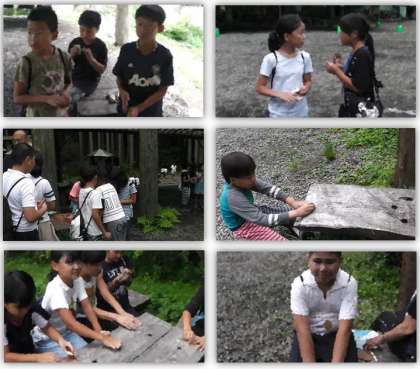 アイスクリーム作りの後は、ペンダント作りです。切った桜の枝を、紙やすりでごしごしと磨いていきます。磨けば磨くほどぴかぴかになり、子どもたちは一心不乱に磨いていました。