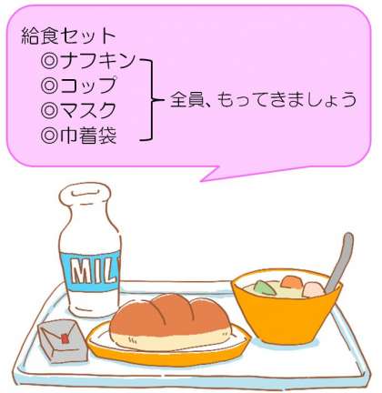 また、8月28日(月)から給食も始まります。給食セットも確かめておきましょう。