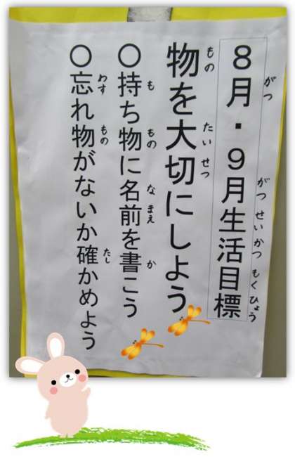 8・9月の生活目標は『物を大切にしよう』です。具体目標は、