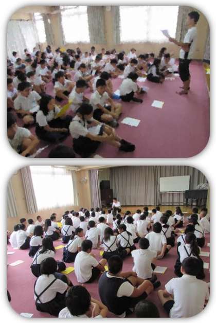 6年生にとっては、小学校で最後の運動会です。今日は、団体演技についての説明を行いました。どんな内容になるのか、どうぞお楽しみに。