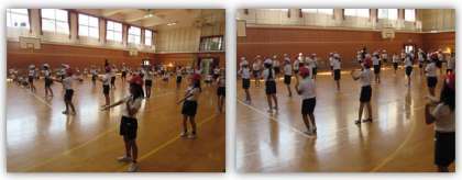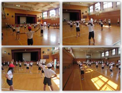 4年生の体育の学習です。今日はダンス(団体演技)の練習を行いました。