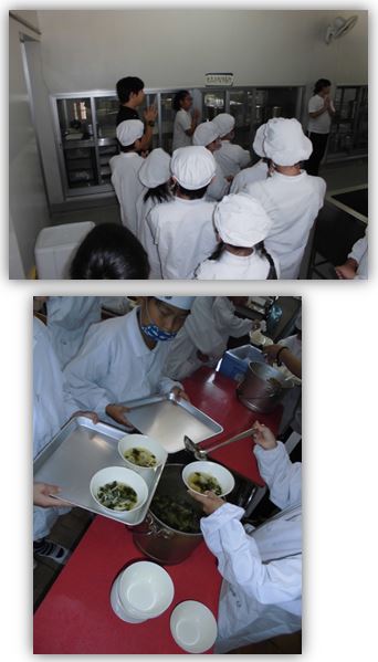 本日の給食の献立をご紹介します。本日の献立は麻婆厚揚げどんぶり、中華スープ、ミニフィッシュ、牛乳でした。