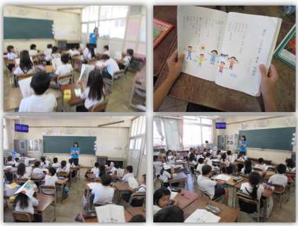 2年生の国語の学習です。詩『空にぐうんと手をのばせ』を音読しています。