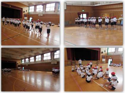 9月4日(月) 2年生の体育の学習です。紅組、白組に分かれ、集合・整列の練習をしました。