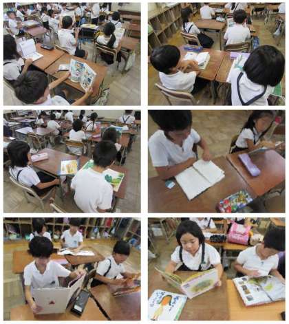 水曜日の朝、読書タイムの様子をご紹介します。子どもたちは各自1冊、本を選び、静かに読書を楽しんでいます。