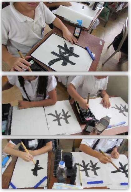 4年生の国語の学習です。毛筆書写で『林』と書きました。
